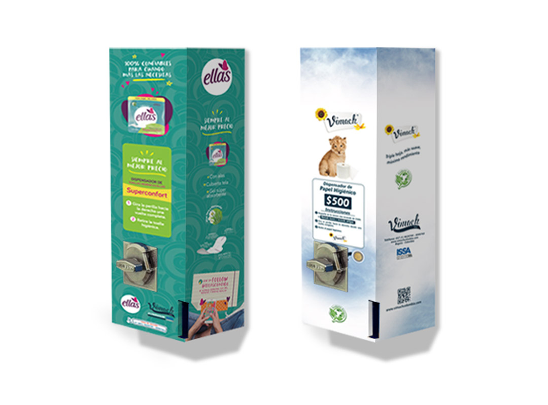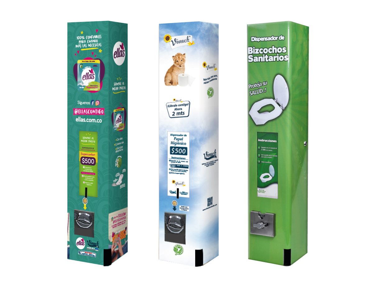 Se utiliza en sectores institucionales o de comercio para proveer a los usuarios de un producto determinado como toallas higiénicas, pañales, condones, tapabocas, pepel higiénico, entre otros.